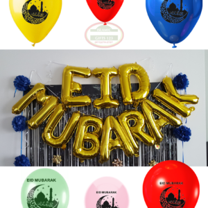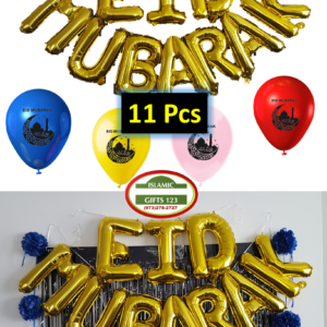 Eid Mubarak Decoration Pack – 11-Piece Set with Gold Letters & Balloons