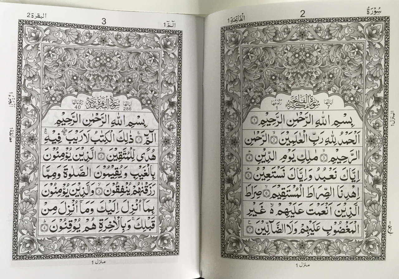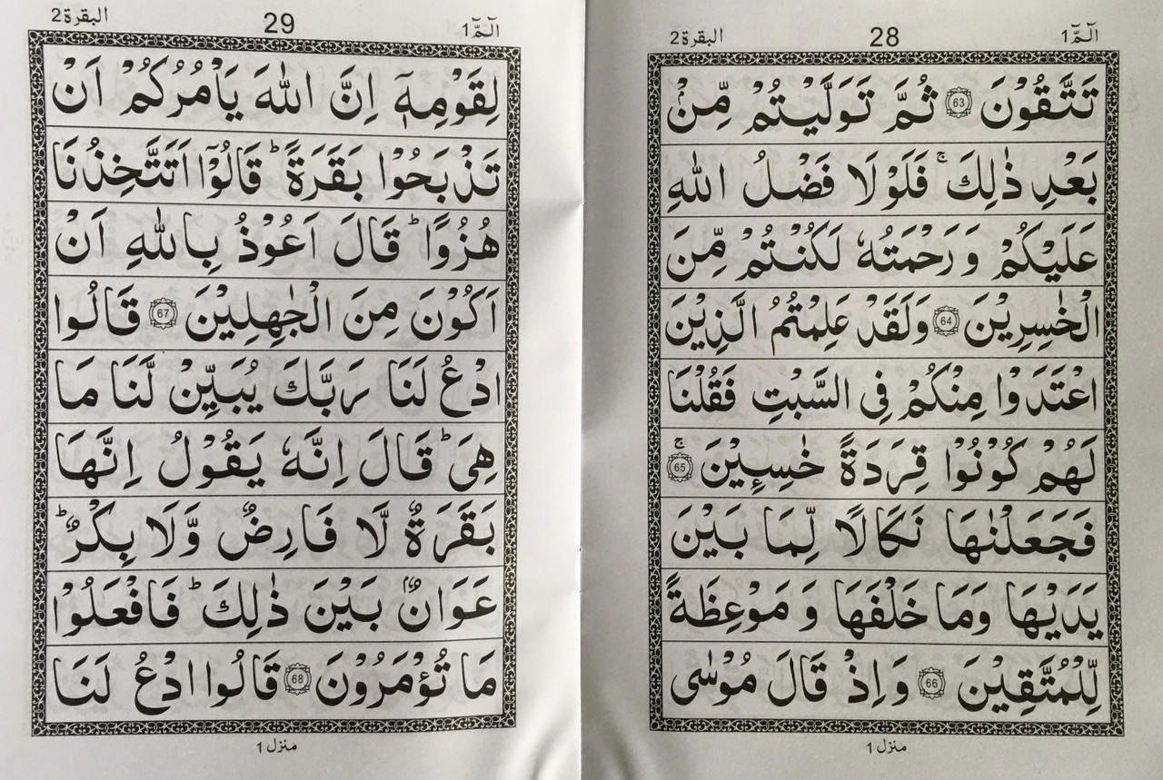 • Black and white print on simple paper, softcover Arabic Quran. Bag has strap and velcro.