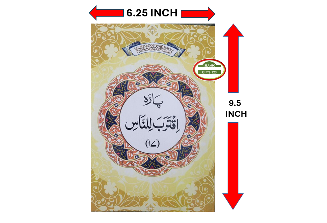• Full size each section of Quran 9.5 Inch x 6.5 Inch x .4 Inch Thick.